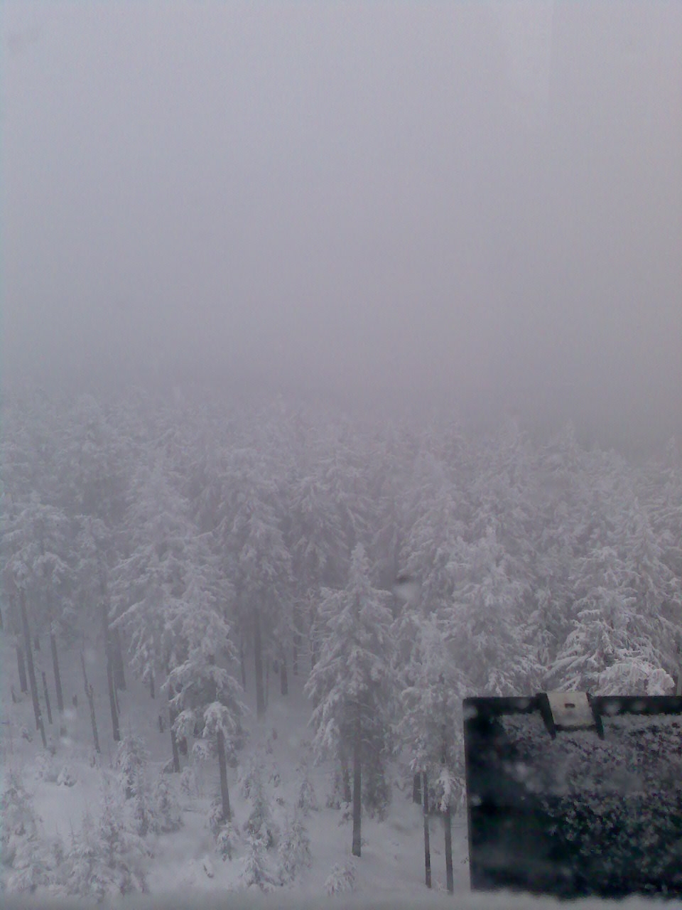 ![]() Blick vom Gipfel in den nebeligen Berg |